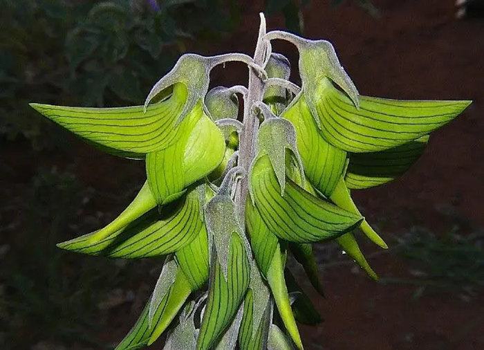 🦜🦜The Cyan Birdflower's scientific name is Crotalaria cunninghamii, and it is a genus of legume in the family Leguminosae, which grows extensively in the northern parts of Australia. The flower, as its name suggests, is as lifelike as a cygnet! The flower shape of the bluebird flower cleverly forms a bluebird with wings ready to fly: the flower pole is the long beak, the calyx is the head, the flag petals are the wings, the wing petals are the feathers, while the keel petals are the body and tail, and the emerald-green petals are covered with delicate veining patterns.