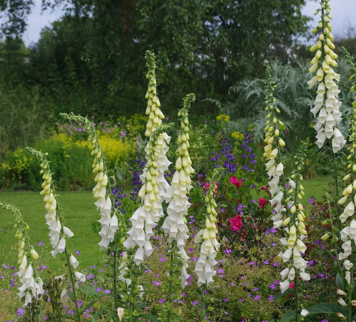 - White Foxglove - You can't go wrong with white foxgloves. Bees and butterflies love them.