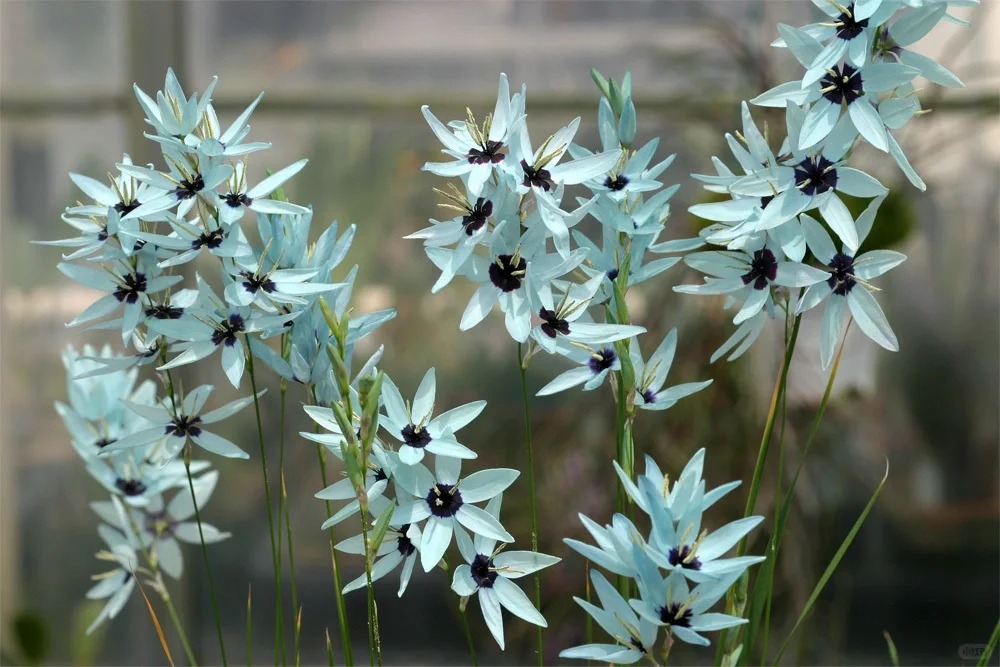 Ixia viridiflora, also known as the Green Corn Lily, is a rare bulb plant admired for its emerald-green petals and deep purple centers. Native to South Africa, it brings exotic beauty to spring gardens while attracting pollinators, making it a stunning and beneficial addition to any space.