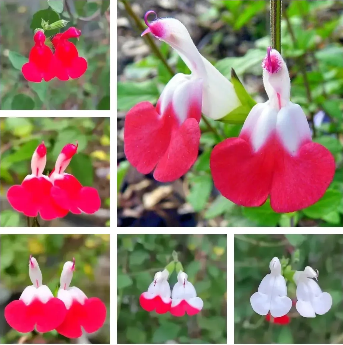 Cherry sage is delicate, charming, smart and cute. Its corolla is like a red lip or a ballet dancer in a red skirt, enchanting and sweet. Its grass leaves exude a faint cherry fragrance, so it is called cherry sage.The flowers of cherry sage are in pairs, like a pair of love birds on a branch.